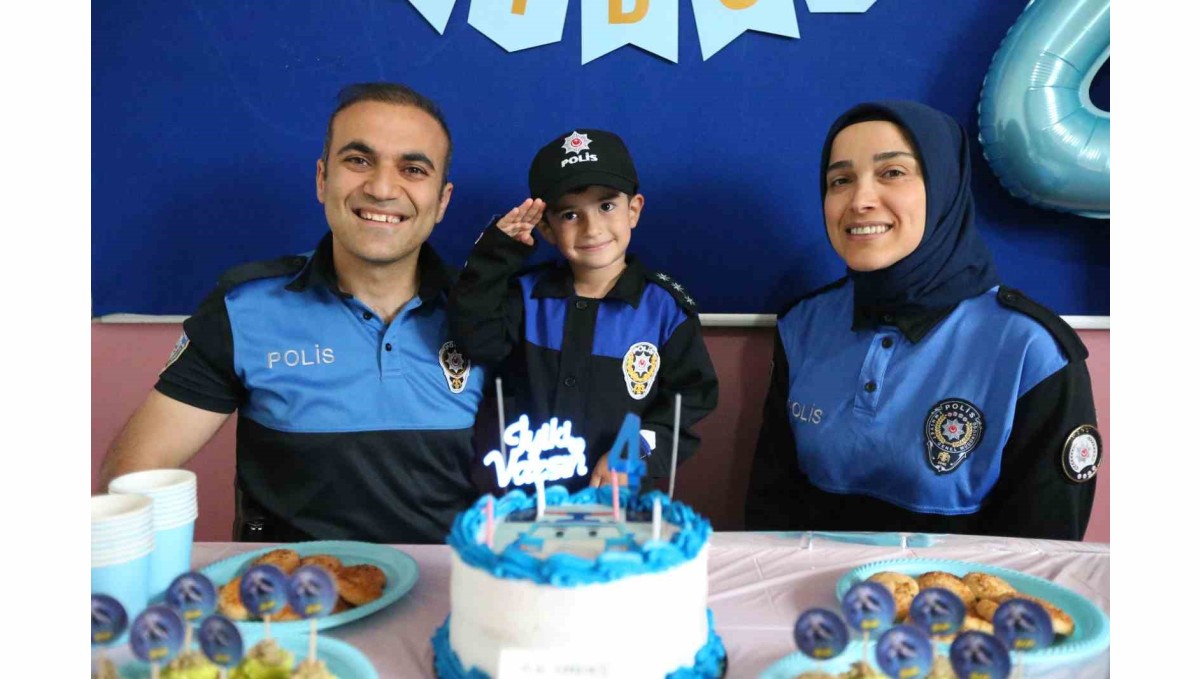 KARS (İHA) - Elif ve Cüneyt Çelik, çiftinin 4 yaşına giren oğulları A. Çınar Çelik'i çok sevdiği polisler unutmadı. Kars İl Emniyet Müdürlüğü Toplum Destekli Polislik Şubesi ekipleri, polis olmak isteyen A. Çınar Çelik'e doğum gününde sürpriz yaparak, "Kanka" olarak adlandırılan "maskot polis" eşliğinde Özel Gurur Kreş ve Gündüz Bakım Evi'ne gelen ekipler Çınar Çelik'in doğum gününü kutladı.
