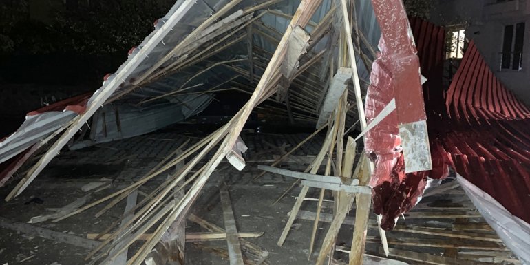 Kentte akşam saatlerinde, Şehitler Mahallesi 112 Sokak'taki 5 katlı bir binanın çatısı rüzgar nedeniyle uçtu.