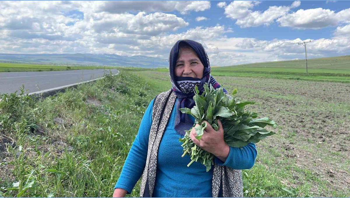 Arpaçay ilçesine bağlı Değirmen Köprü köyünde yaşayan Leyla Yılmaz, evelik otunun bahar aylarında kendiliğinden yetiştiğini belirtti.