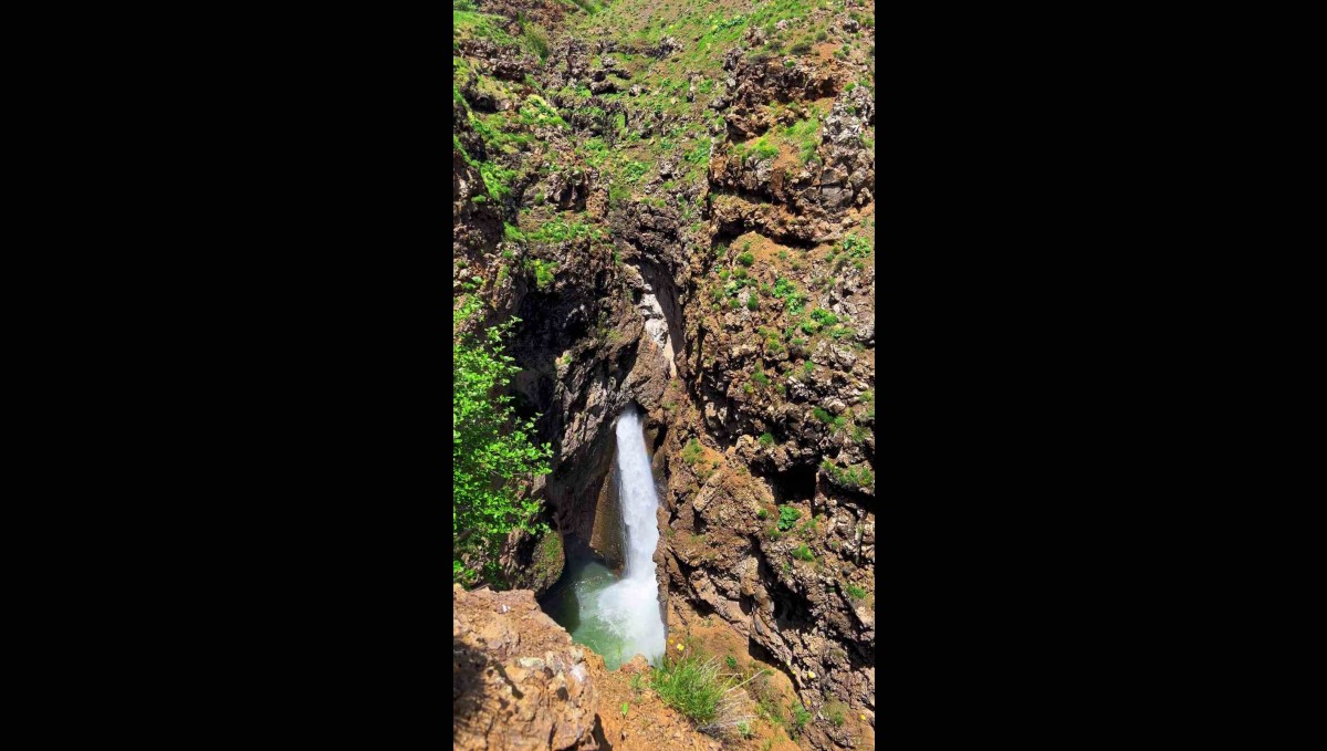 Bingöl'ün Solhan ilçesinde kayayı oyarak süzülen doğa harikası şelale, görenleri kendine hayran bırakıyor.