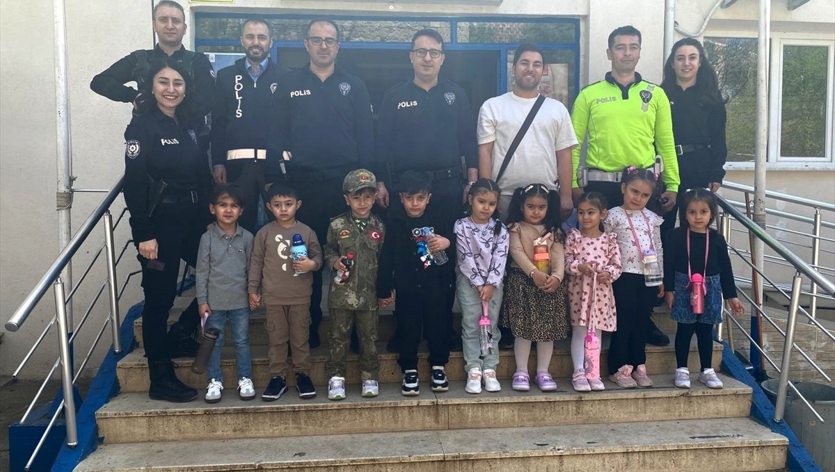 Ziyarette, polis memurları öğrencilere mesleklerini tanıttı ve çeşitli hediyeler verdi.(AA)