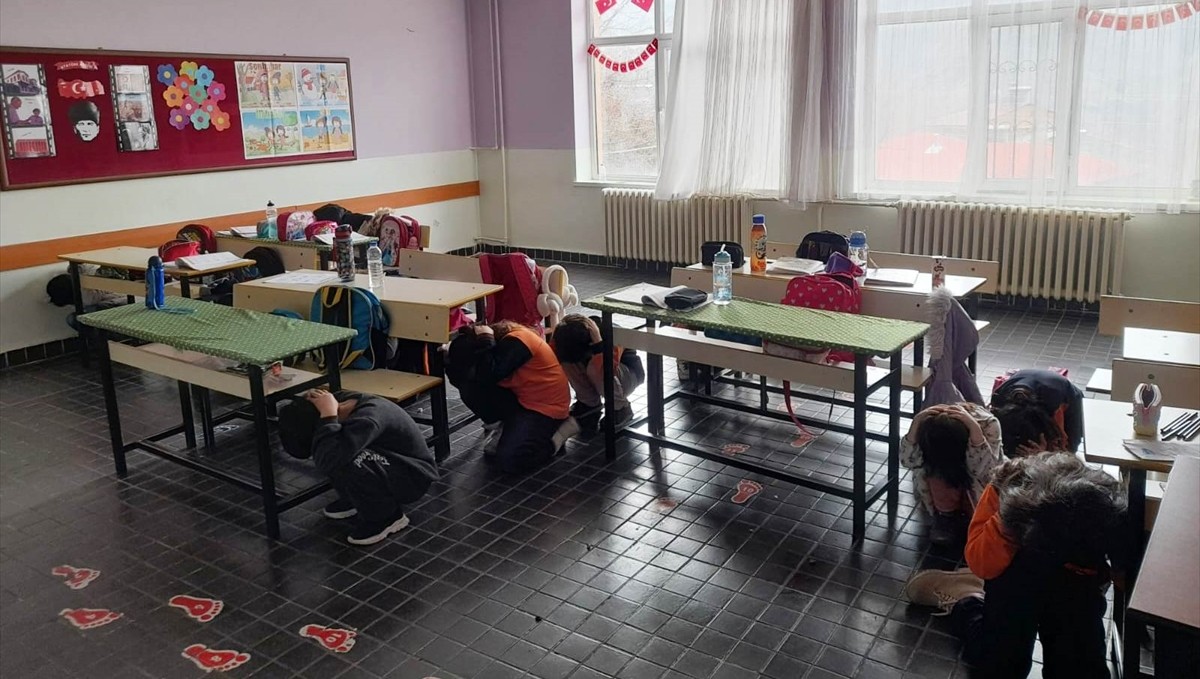 Keban'da Fevzi Çakmak İlkokulu'nda 1-7 Mart Deprem Haftası dolayısıyla öğrencilerin katılımıyla depreme hazırlık tatbikatı gerçekleştirildi.