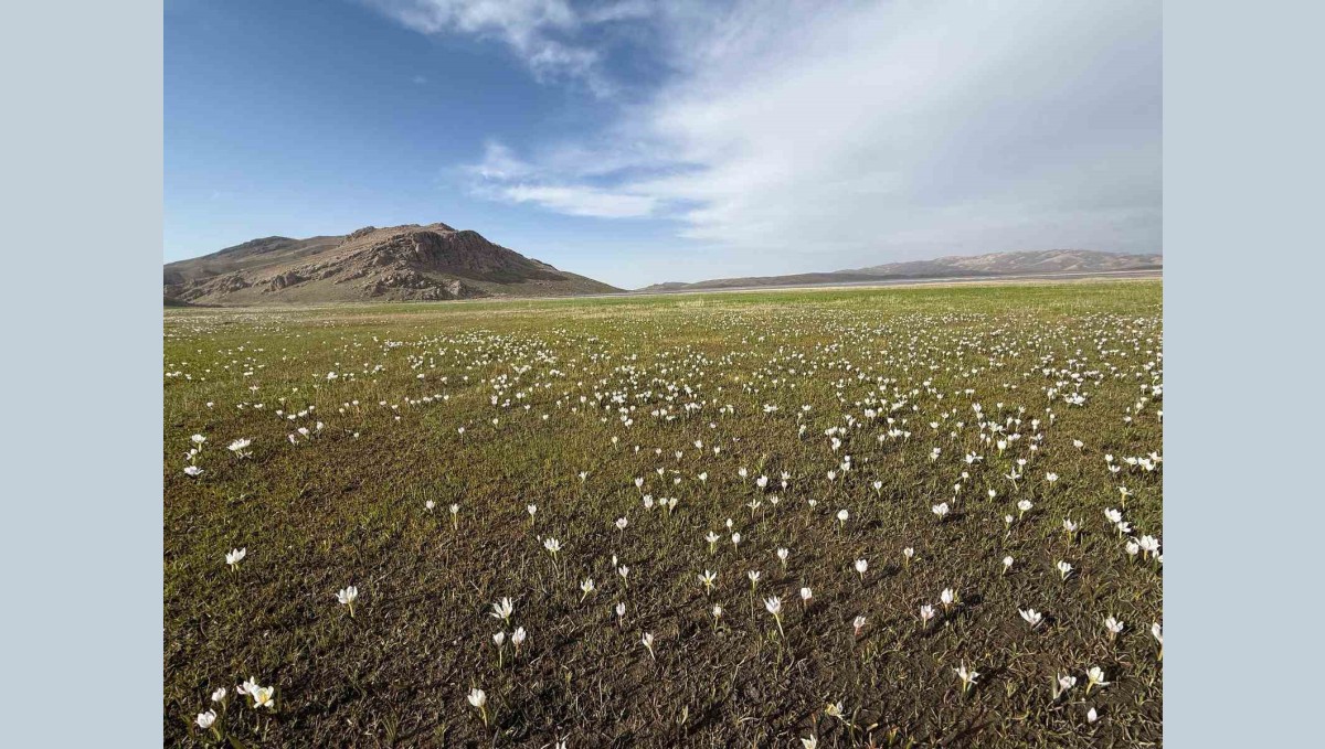 Van'ın Erek Dağı eteklerindeki 2 bin 550 rakımlı Keşiş (Turna) Gölü'nün çevresinde açan kardelenlerin oluşturduğu manzara göz kamaştırıyor.