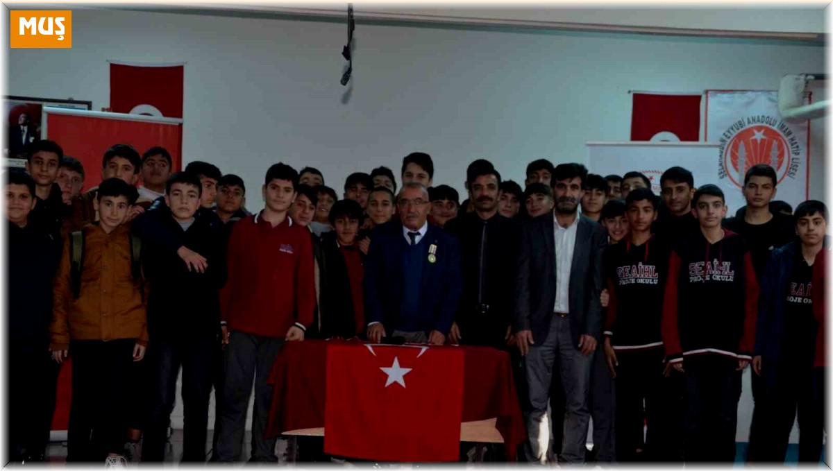 Şehit Yakınları ve Gaziler Genel Müdürlüğünün 'Vatan ve Kahraman Buluşmaları' projesi çerçevesinde Muş'ta lise öğrencilerine yönelik konferans düzenlendi.