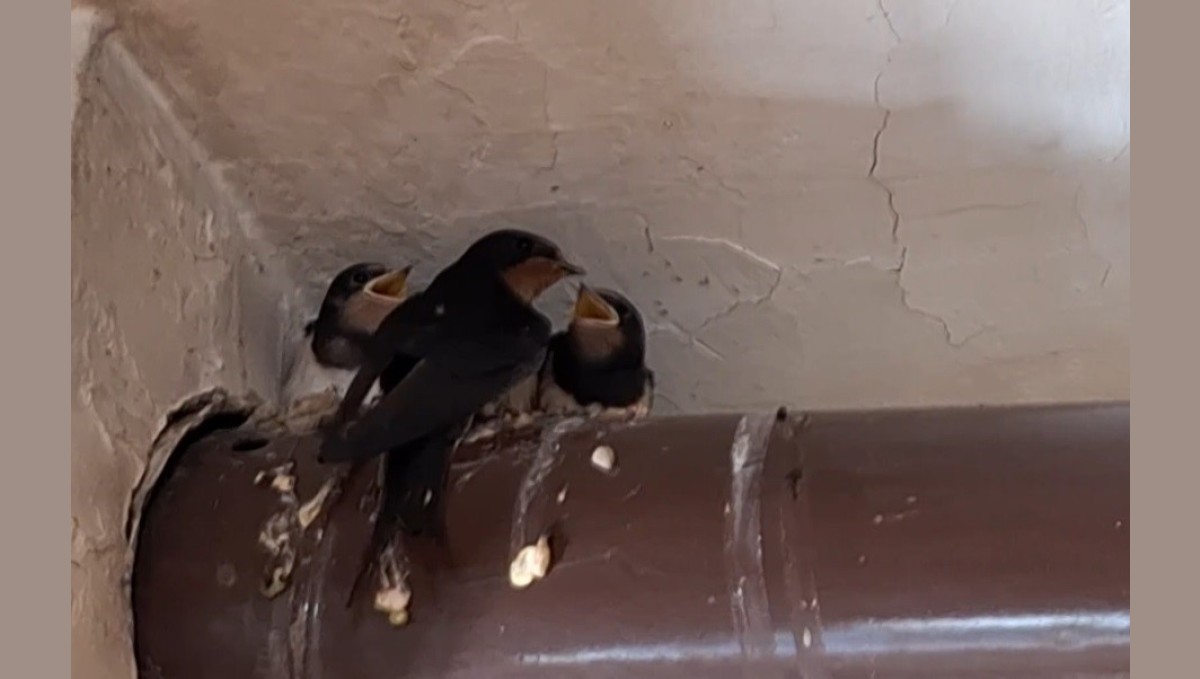 Erzincan'da kahvehaneyi yuva yapan 3 yavru ve anne, baba kırlangıç ailesi yürekleri ısıttı.