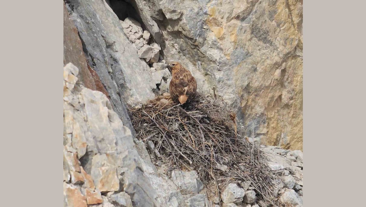 MALATYA (İHA) - Akçadağ Karapınar Tavşantepe mevkiinde yaşanan olayda, taş ocağında patlatma hazırlıkları yapılırken, iş makinesi operatörü Erdal Şahin kızıl şahin yavrusunu fark etti. Yuvada yapılan incelemede nesli tehdit altında olan yırtıcı kuş türlerinden biri olan kızıl şahine ait biri sağ, diğeri telef olmuş iki yavru bulunurken, çalışmalara ara verildi.