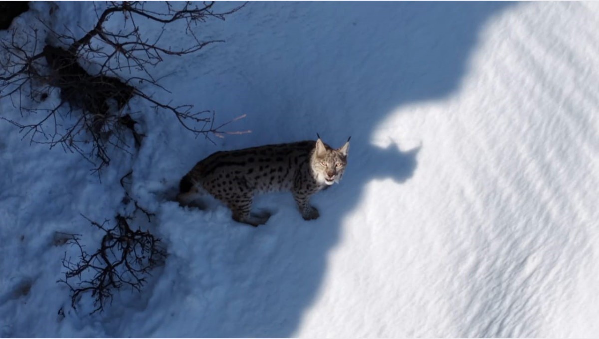 Tunceli Doğa Koruma ve Milli Parklar Şubesi görevlisi Azat Özel, nesli tehdit altında olduğu için koruma altında bulunan vaşağı dron ile kayıt altına aldı. Vaşak, çekilmesine aldırış etmeden adeta poz verdi.