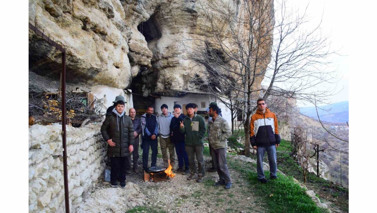 Yaklaşık 250 yıl önce inşa edilen, bin 750 metre rakımda yer alan ve halk arasında "korku mağarası" olarak bilinen mağara evlerde zaman zaman yaşamını sürdüren Kurt'un hayatı, bölgeye gelen 'Demir dünya' belgesel ekibinin ilgisini çekti.