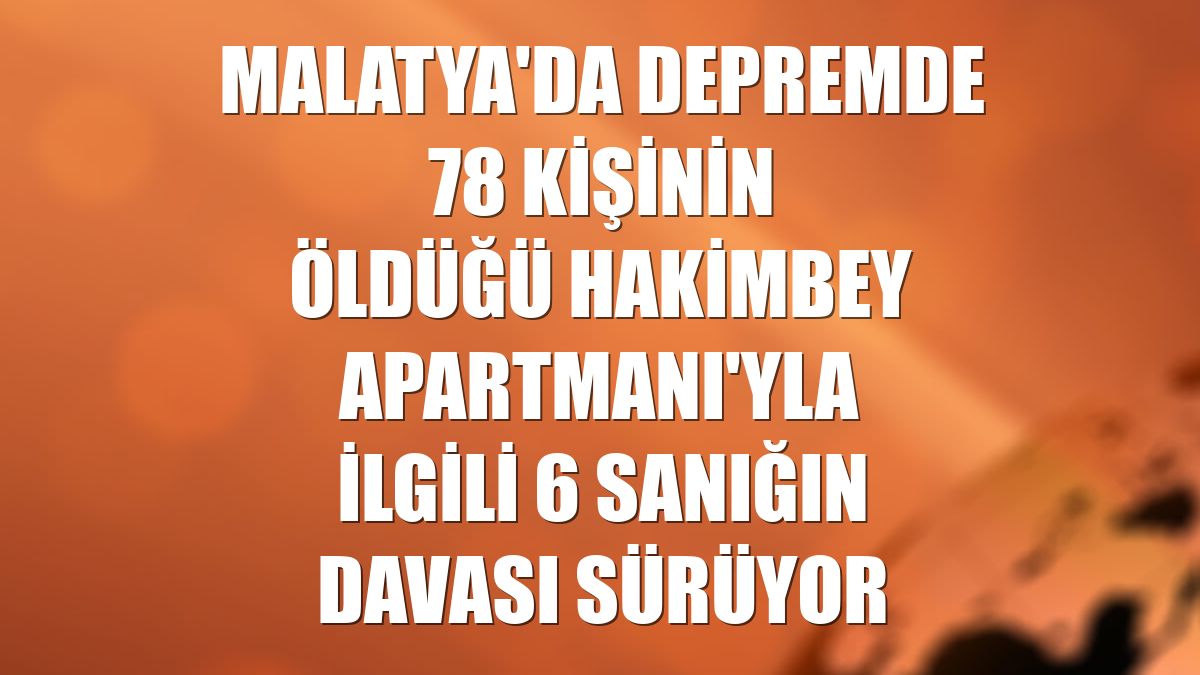 Malatya (AA) - Malatya'da, Kahramanmaraş merkezli 6 Şubat 2023'teki depremde yıkılan, 78 kişinin hayatını kaybettiği Hakimbey Apartmanı'na ilişkin tutuksuz 6 sanığın yargılandığı davanın görülmesine devam edildi.