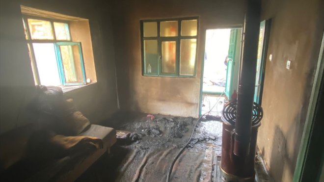 Güzelyurt Mahallesi'ndeki müstakil bir evde sobadan kaynaklı yangın çıktı.