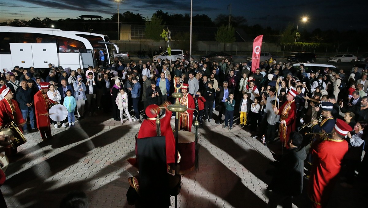 Yapılan duanın ardından 401 kişilik kafile, aileleriyle vedalaşarak otobüslerle havalimanına hareket etti.