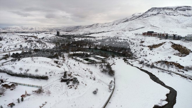 Öte yandan karla birlikte beyaza bürünen kentte Turgut Özal Tabiat Parkı'nda güzel görüntü oluştu.