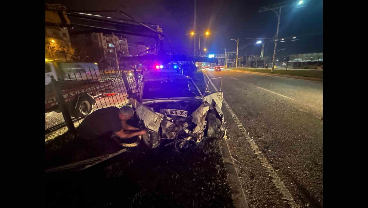 Malatya'da sürücüsünün kontrolünden çıkan Fiat Tofaş otomobil, refüjdeki aydınlatma direği ve demir korlukları devirerek durabildi. Ortalığın savaş alanına döndüğü kazada 4 kişi yaralandı.