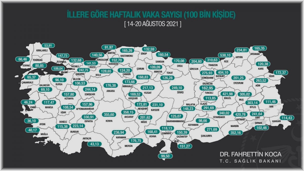 Malatya - 7- 13 Ağustos tarihleri arasında Malatya'da 100 bin kişide 176,14 olan vaka sayısı, 14- 20 Ağustos tarihleri arasında 148,23'e geriledi.