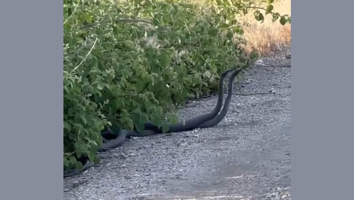 Malatya'nın Doğanşehir ilçesinde, yol kenarında çiftleşme dansı yapan iki yılan vatandaşın cep telefonu kamerasıyla görüntülendi.