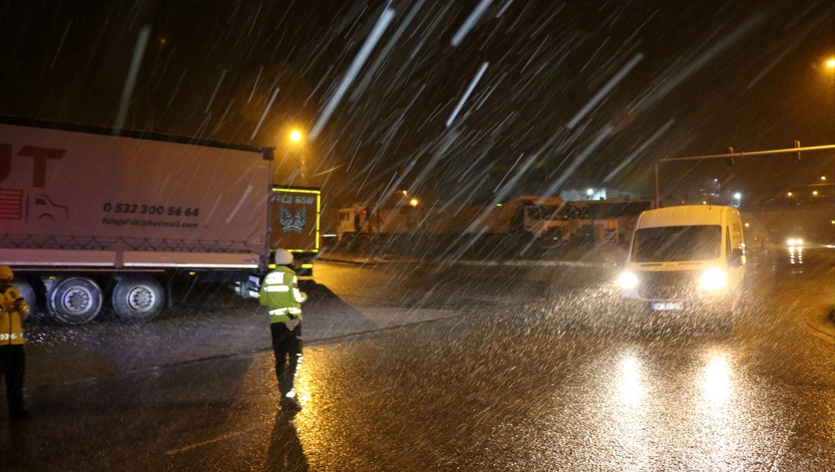 Yol güvenliği için kontrol noktaları oluşturan ekipler, kış şartlarına uygun olmayan araçları geri çeviriyor.