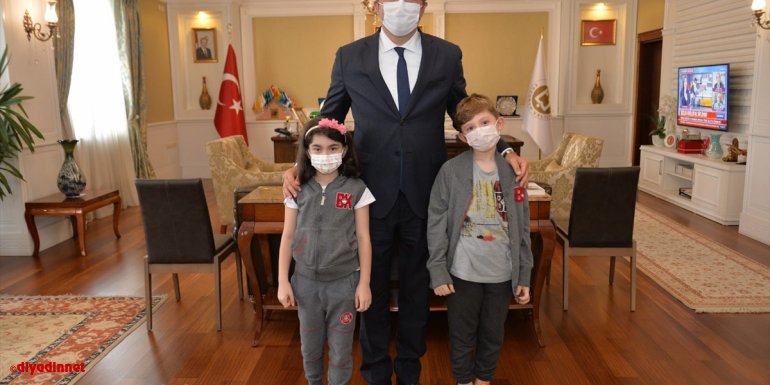Erzurum - Uluslararası Caribou Matematik Yarışması'nda dünya birincisi olan Bahçeşehir Koleji Erzurum Kampüsü öğrencileri Yiğit Can Aydın ve Defne Çelik, Erzurum Valisi Okay Memiş'i makamında ziyaret etti.