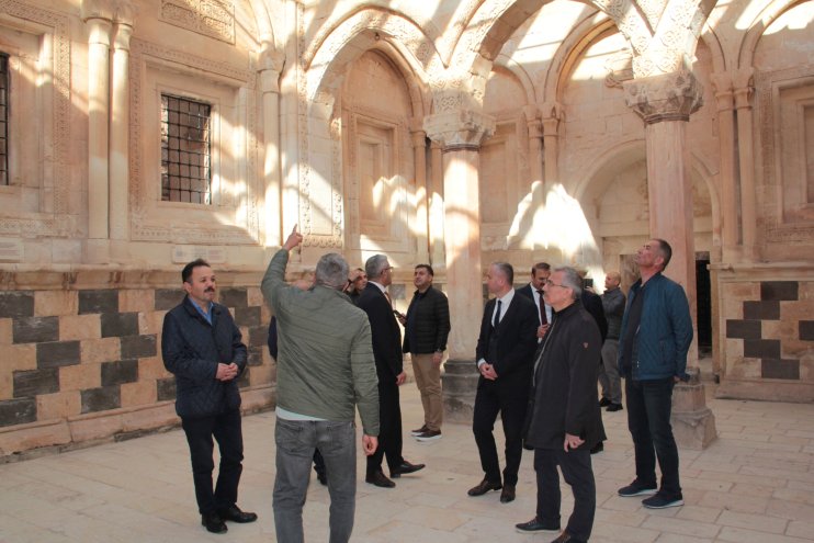 UNESCO Dünya Mirası Geçici Listesi'nde yer alan İshak Paşa Sarayı'nda gerçekleştirilen ziyarette heyet, cami, türbe, divan, harem salonları, iç ve dış avlular ile çeşitli bölümlerden oluşan yapıyı gezdi. Yetkililerden tarihi ve mimari özellikler hakkında bilgi alındı.