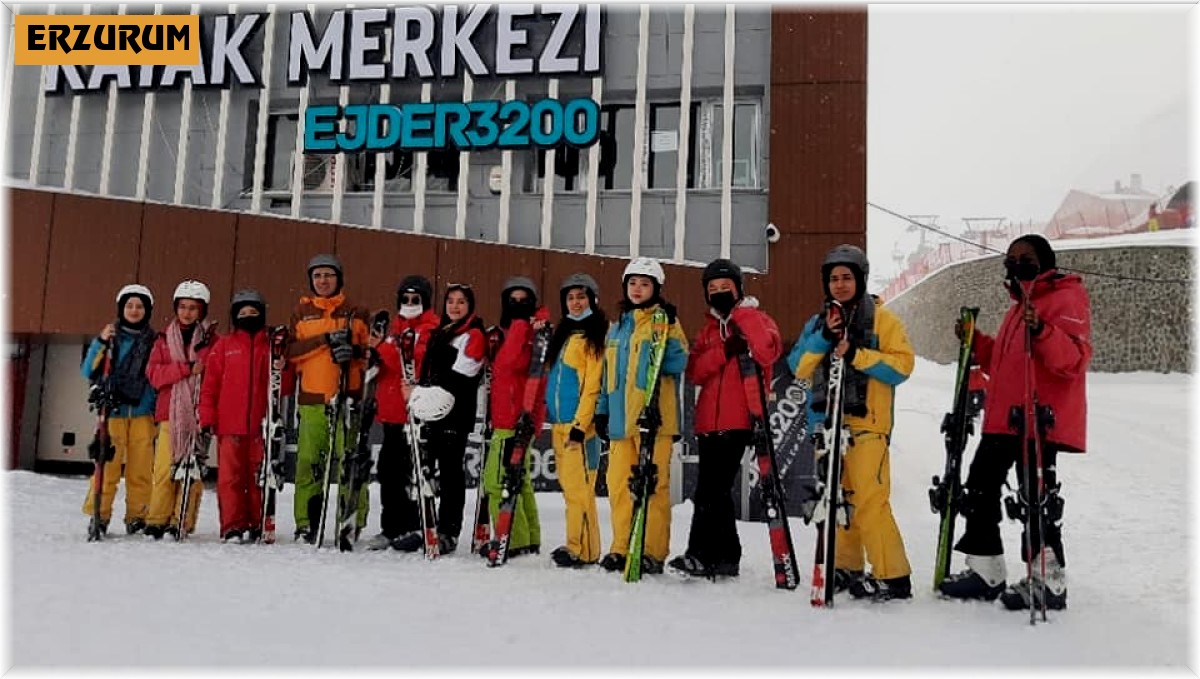 Yoğun kar yağışının gerçekleştiği bu günlerde soğuğu ve karı fırsata çeviren misafir öğrenciler Palandöken Kayak merkezinde doyasıya eğlendiler.