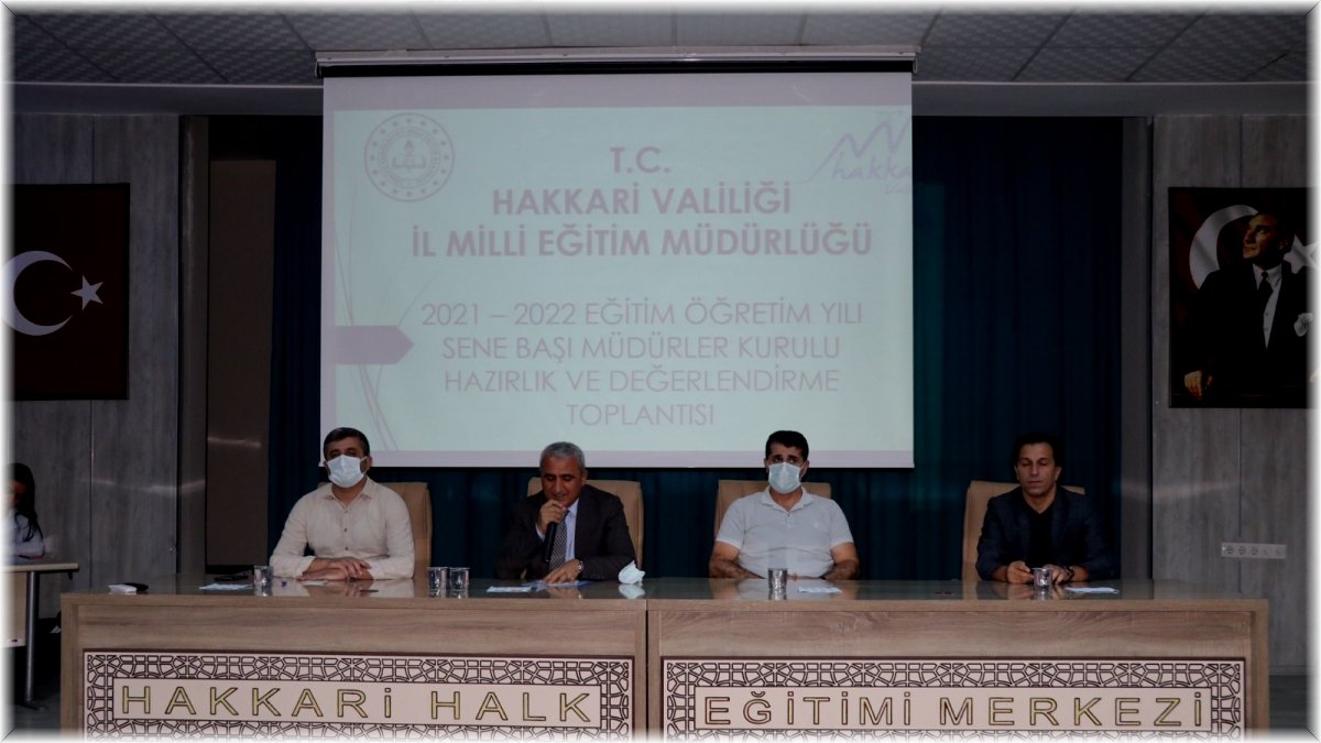 Hakkâri - Halk Eğitim Merkezi Müdürlüğünün konferans salonunda salgın tedbirlerine uyularak gerçekleştirilen toplantı; saygı duruşunda bulunulması, İstiklal Marşı'nın okunması ve Milli Eğitim Bakanının görüntülü mesajları ile başladı. Resmi ve özel tüm okul müdürlerine hitap eden İl Müdürü Gür, asrın afeti olan salgın sürecinin çok iyi bir şekilde yönetildiğine vurgu yaptı. Müdür Gür, "Hem uzaktan hem de yüz yüze yürütülen eğitim faaliyetlerinde okullar hiç kapanmadı, öğrencilerin eğitim olanaklarından en iyi şekilde faydalanmaları adına çalışmalar aralıksız olarak devam ediyor. Yüz yüze eğitim sürecine il olarak hazırız. Okullar sadece bilgi akışının olduğu yerler değildir, aynı zamanda sosyalleşme, paylaşma, dayanışma ikliminin olduğu yerlerdir. Bir öğretmen, öğrencileriyle kurduğu göz temasıyla, onların gönül kapısından girer, zihinlerine ulaşır ve eğitim orada başlar. Öğrencilerimizin cıvıl cıvıl sesleriyle dolduracakları, öğretmenleriyle göz göze iletişim kuracakları sınıf ortamlarının hazırlığı yapıldı. Tüm okullarımızın fiziki ortamlarının hazırlığı ve ihtiyaçları tespit edilerek gerekli önlemler alındı. Bunun için her bir bireyin sorumluluğu olduğunu unutmayalım. Öğrenme yolculuğumuzun sağlıklı yürüyebilmesi için meslektaşlarımı ve hemşehrilerimi aşı olmaya davet ediyorum. Pandemi sürecindeki tedbirlere uyulması toplum sağlığına olduğu kadar geleceğimiz olan çocuklarımızın eğitimine de katkı sağlayacak. Sağlıklı ve başarılı bir dönem olması dileğiyle yeni eğitim öğretim yılının tüm eğitim camiamıza hayırlı olmasını temenni ediyor, kolaylıklar diliyorum. Allah yar ve yardımcımız olsun" dedi.