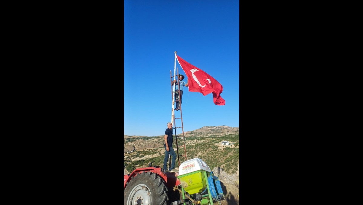 Muhtar Fırat, Gazıkur mevkisine diktiği 10 metre uzunluğundaki direğe 3 metreye 6 metre ebatlarında Türk bayrağı astı.