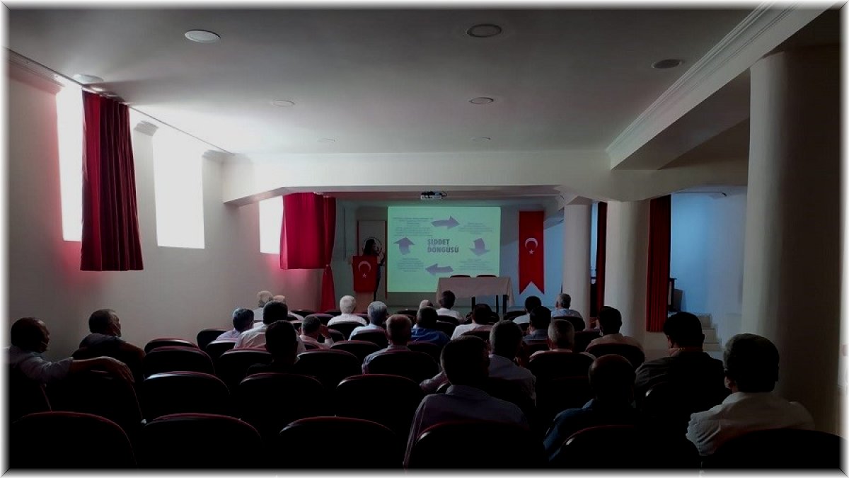 Malatya'nın Doğanşehir İlçesi'nde muhtarlara, görev ve sorumlulukları ile ''Aile Hukuku Modülü Aile İçi Şiddet'' konulu eğitim verildi.