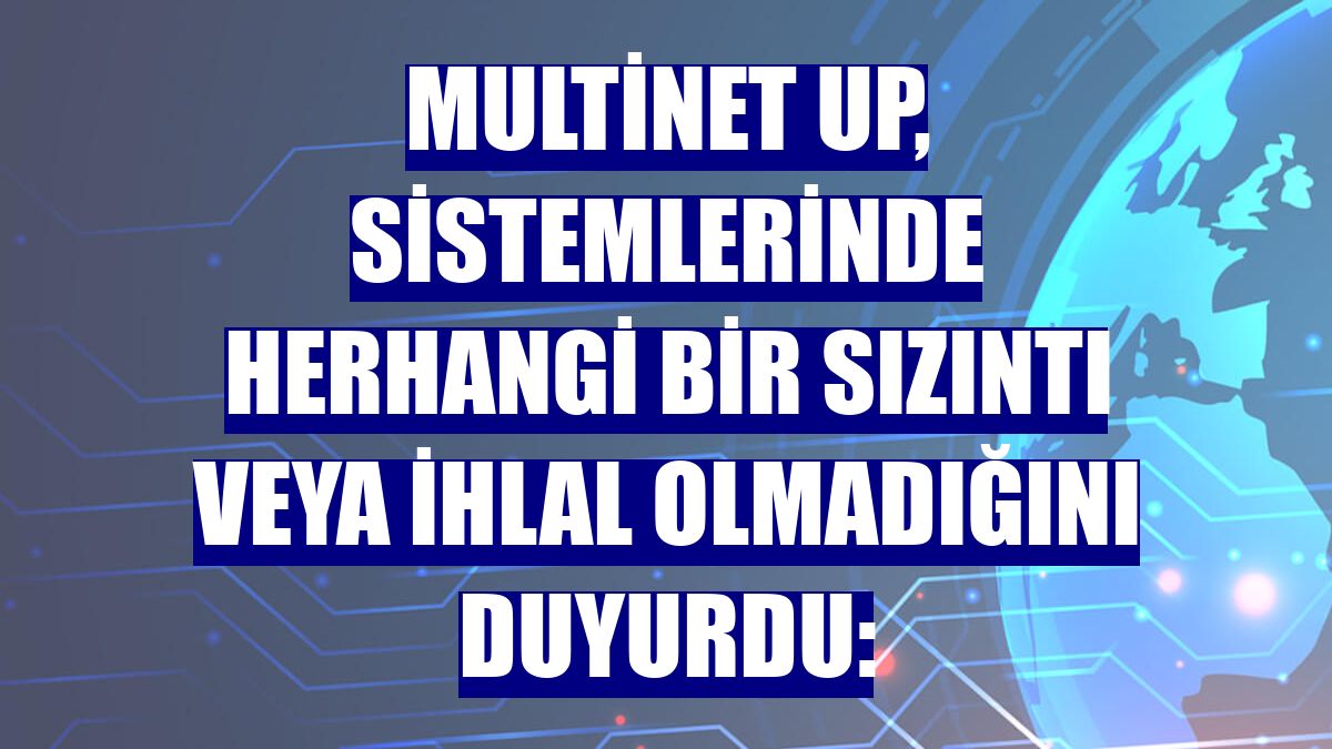 Bu kapsamda, Multinet Up sistemlerinde herhangi bir sızıntı veya ihlal olmadığı aktarılan açıklamada, "Kullanıcılarının veri güvenliğini hassasiyetle koruyan şirketimiz, haberde yer alan kart kullanıcımızın tarafımıza ulaşarak kendisine gönderilen e-posta hakkında bilgi vermesinin ardından ivedilikle kapsamlı bir teknik inceleme başlatmıştır. Yapılan incelemeler sonucunda, Multinet Up sistemlerinde herhangi bir sızıntı veya ihlal olmadığı tespit edilmiştir." denildi.