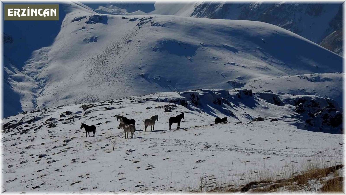 Erzincan - Munzur Dağlarındaki yılkı atları, fotoğraf ve doğa tutkunlarının ilgisini çekiyor. Yaylada karla kaplanan arazide otlayan yılkı atları, fotoğrafçılar tarafından görüntülendi.