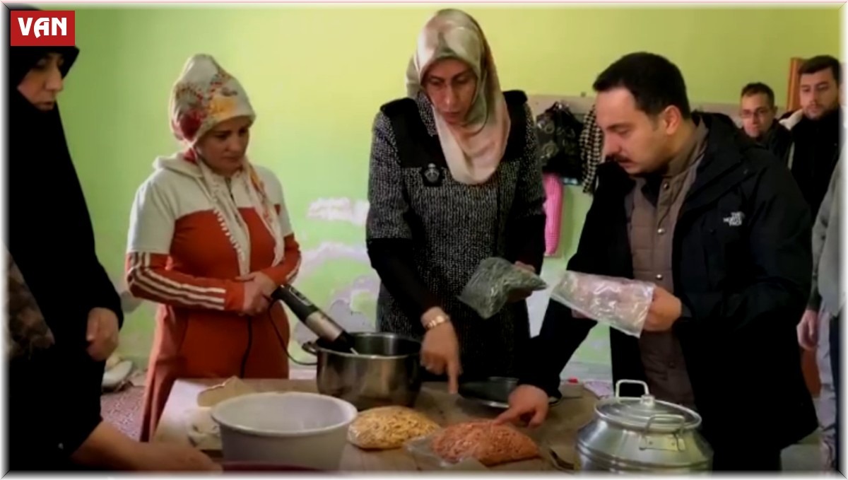 Van: Muradiye'de bir araya gelen kadınlar, açmış oldukları kooperatif bünyesinde reçel, yufka, tandır ekmeği, erişte ve benzeri ürünler üretmeye başladı. Kooperatifi ziyaret eden Muradiye Kaymakamı ve Belediye Başkan Vekili Melih Aydoğan, Kooperatif Başkanı Suna Muratoğlu Behçet'ten bilgi aldı.