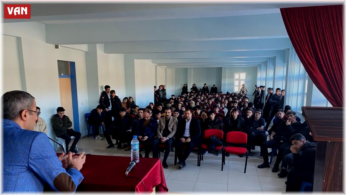 Van: Muradiye Alpaslan Fen Lisesinde düzenlenen programda, Van YYÜ Öğretim Görevlisi Doç. Dr. İbrahim Aydın öğrenciler ile bir araya geldi. Başarıya gidilecek yolda karşılaşılan sorunların nasıl üstesinden gelinebileceğini anlatan Aydın, öğrencilerin sorularını cevaplandırdı.