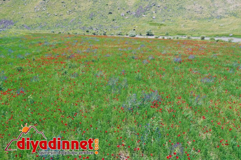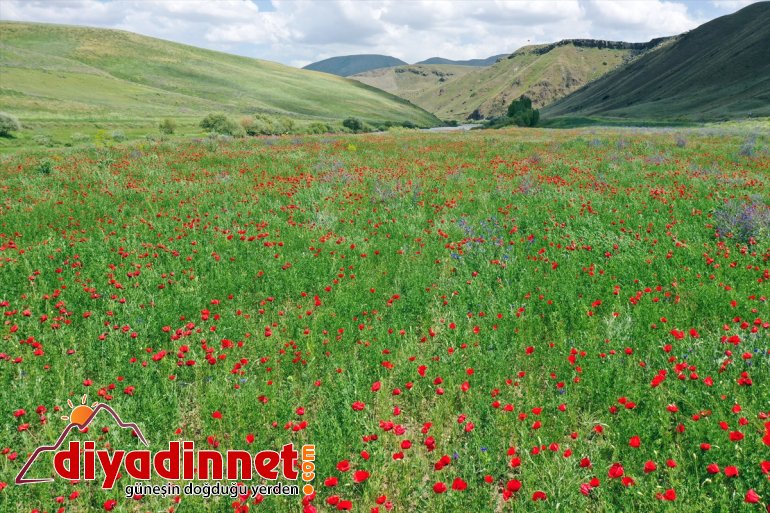 Ağrı - Doğu Anadolu Bölgesi'nin en önemli akarsu kaynaklarından olan ve geçen yıl kuraklığın etkisinde kalan Murat Nehri'nin çevresi, kırmızı ve mor renkli çiçeklere büründü.
