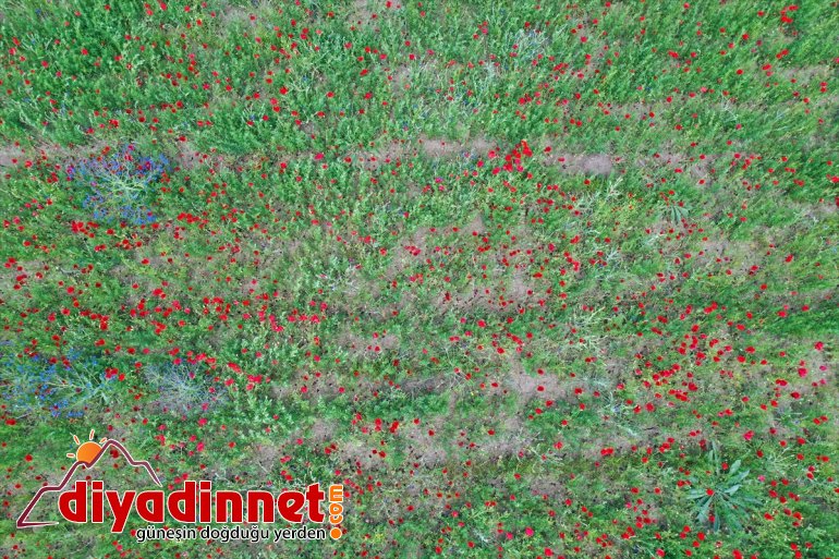 Rüzgarla savrulan nehrin çevresindeki çiçekler, Anadolu Ajansı ekibince dronla görüntülendi.