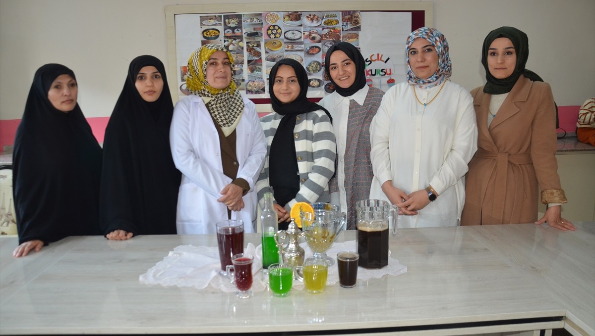 MUŞ (AA) - Muş'ta aşçılık kursuna katılan kadınlar, ramazan ayında Osmanlı şerbeti üreterek, Halk Eğitimi Merkezi Müdürlüğündeki diğer kursiyerlere dağıtıyor.