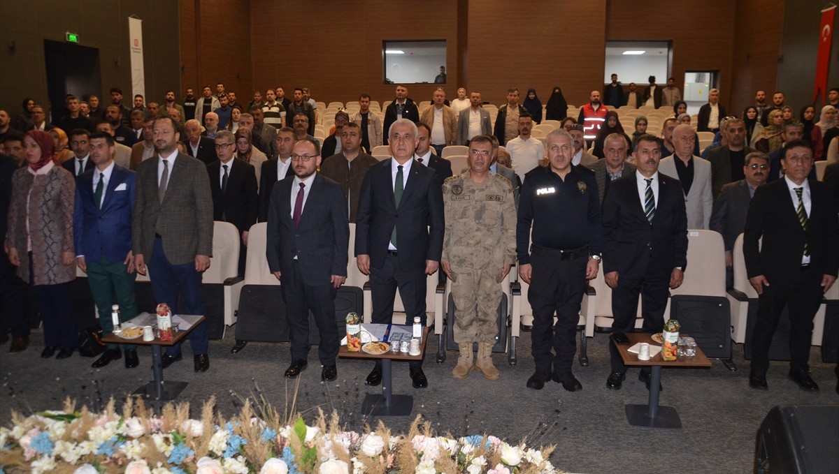 Muş Alparslan Üniversitesi İslami İlimler Fakültesi Konferans Salonu'nda yapılan toplantı, saygı duruşunda bulunulması ve İstiklal Marşı'nın okunmasıyla başladı.