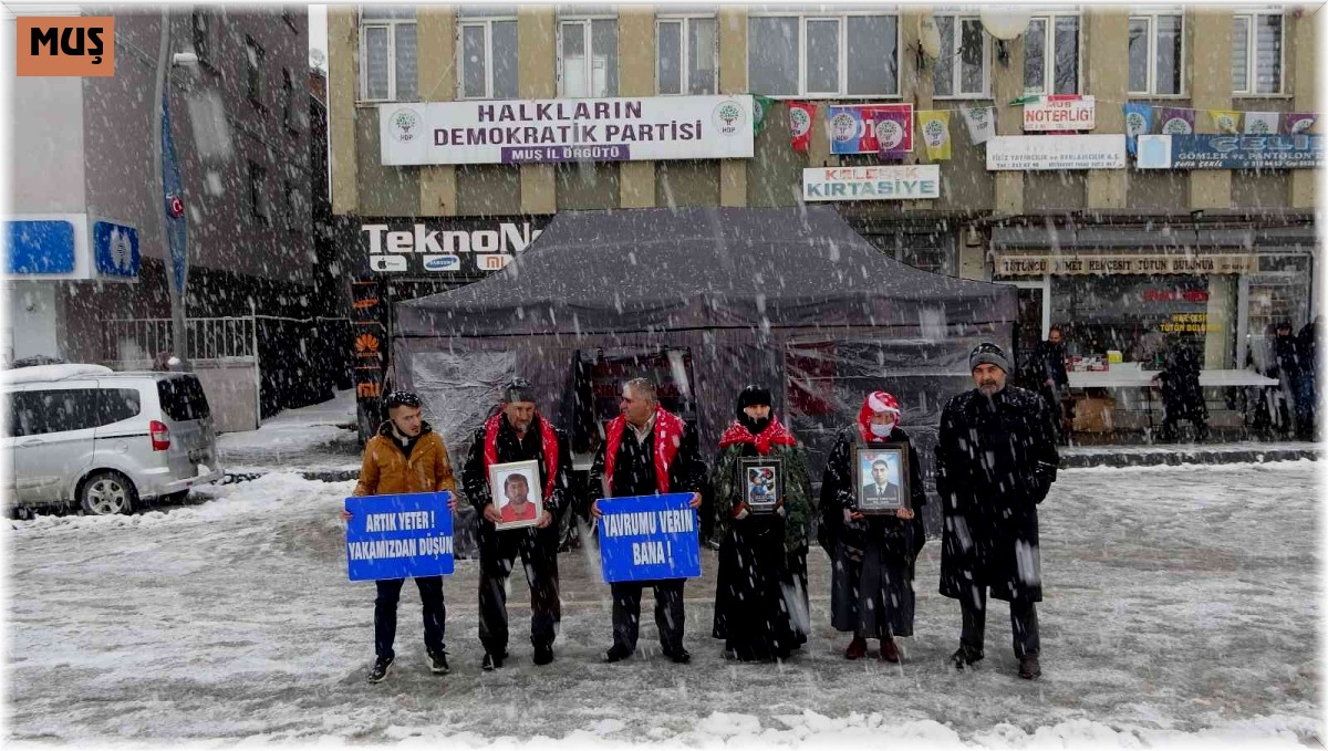 Muş'ta çocuklarının PKK terör örgütü tarafından kandırılarak kaçırılmasından HDP'yi sorumlu tutan aileler, kar altında evlat nöbeti tuttu.