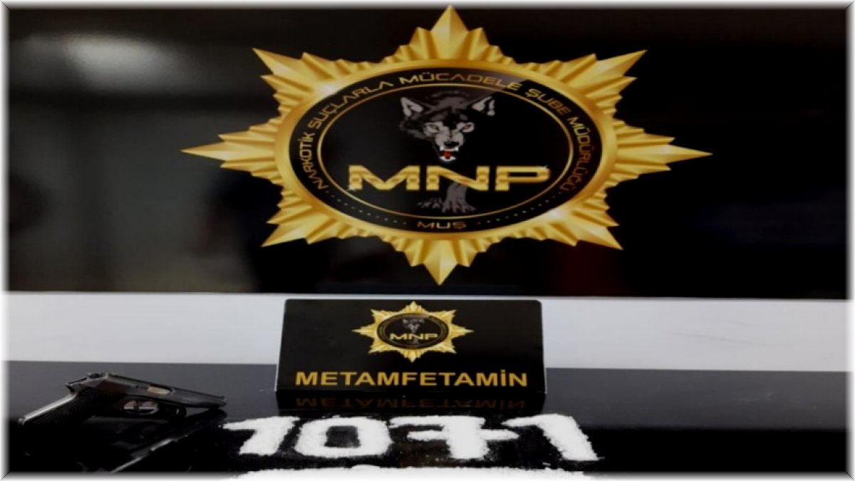 Muş - Valilikten yapılan açıklamada, İl Emniyet Müdürlüğü Narkotik Suçlarla Mücadele Şube Müdürlüğü görevlilerince uyuşturucu ve uyarıcı madde ticareti yapan şahıslara yönelik operasyon düzenlendiği belirtildi. Operasyonda 139,06 gram metamfetamin maddesi, 1 Kırıkkale marka ruhsatsız tabancanın ele geçirildiği kaydedildi. Ele geçirilen uyuşturucularla "1071 Muş" yazıldı.