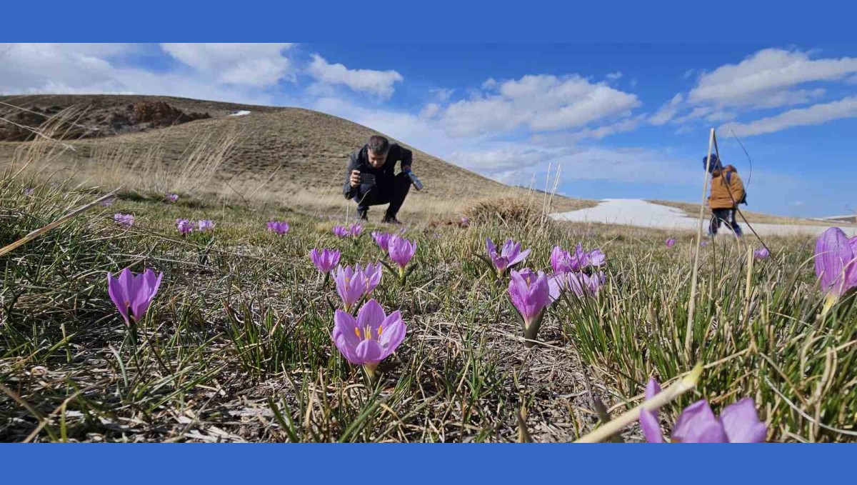 Bitlis'in Tatvan ilçesinde bulunan Nemrut Kalderası'nda açan mor çiğdemler, ziyaretçilerine görsel şölen sunuyor.