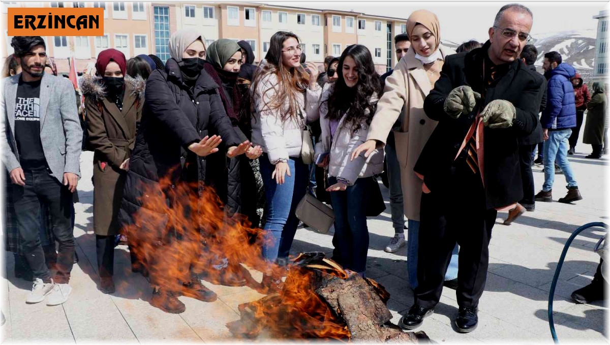 Erzincan - Baharın müjdecisi 21 Mart Nevruz Bayramı Erzincan'da soğuk hava altında bir dizi etkinlikle kutlandı. EBYÜ'de düzenlenen etkinlikte Nevruz ateşi için alana konulan odunların yaş olması nedeniyle pürümüzle alevlendirilmeye çalışılan ateş uzun süre yakılamadı. Daha sonra yanan cılız ateşin üzerinden birkaç protokol koruması ve öğrenci atlayış gerçekleştirdi.