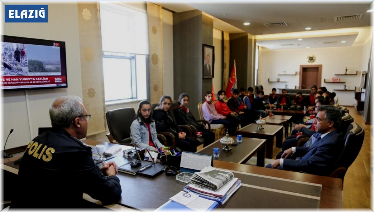 Elazığ'da polis teşkilatını yakından tanımak ve yerinde görmek isteyen öğrenciler, İl Emniyet Müdürü Adnan Karayel'i ziyaret ederek birimleri gezdi.