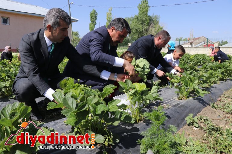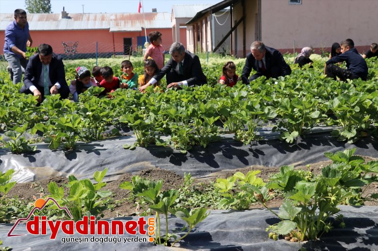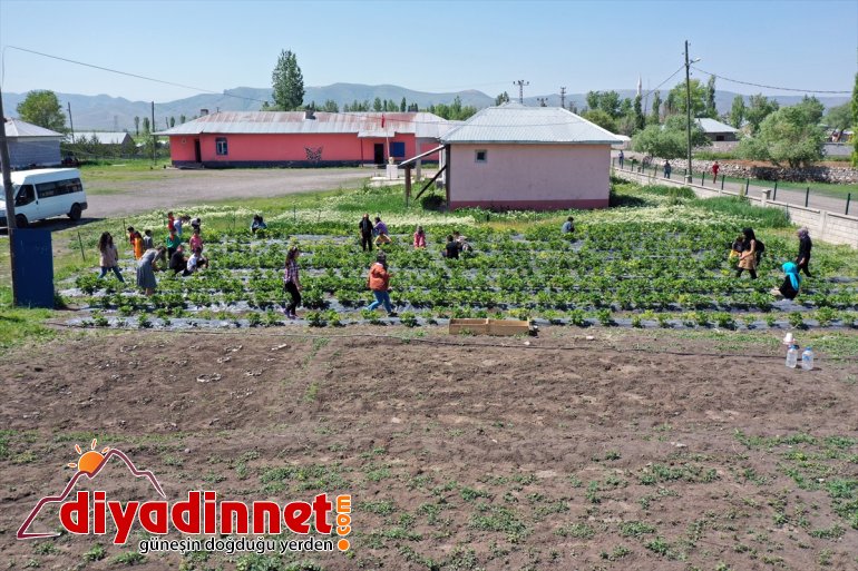 Ağrı - Ağrı'nın Sadaklı Köyü İlk ve Ortaokulundaki çocuklar, tarıma kazandırılan okul bahçesinde çilek yetiştiriciliğini uygulamalı öğrenme fırsatı buluyor.