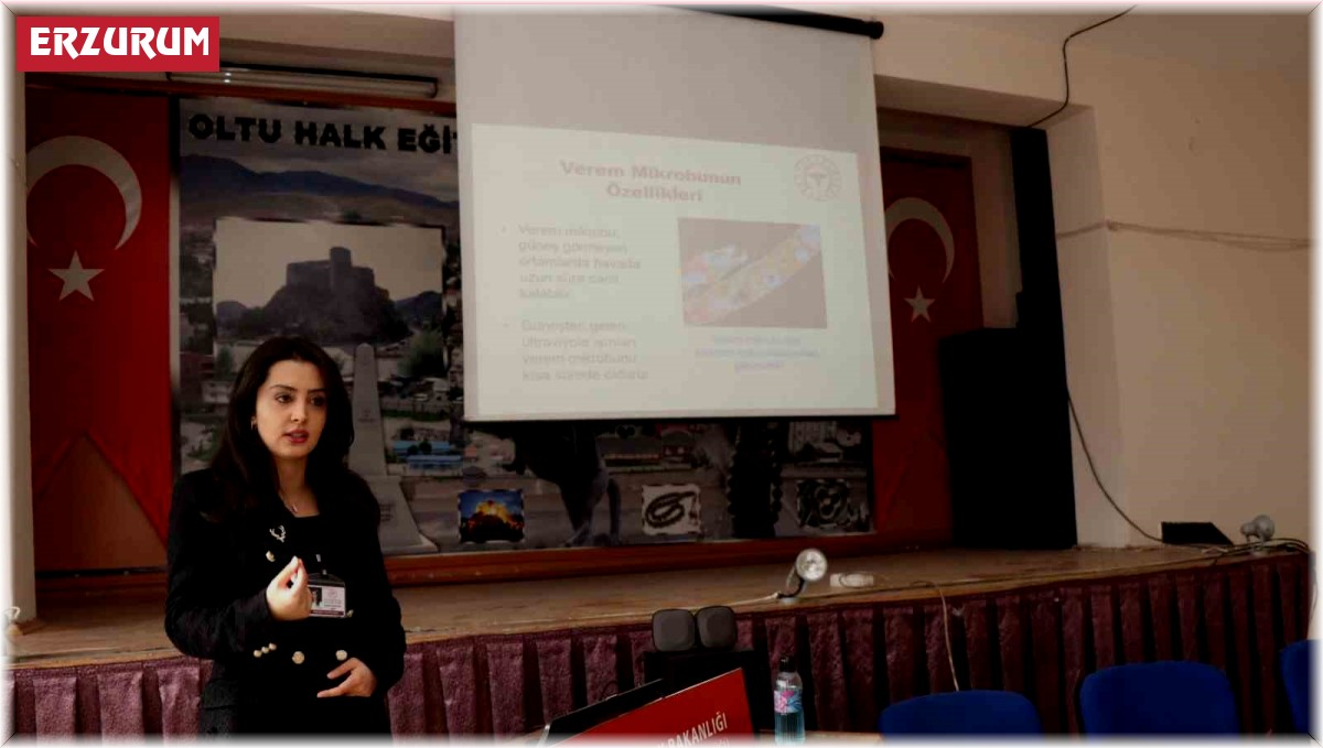 Erzurum - Oltu İlçe Sağlık Müdürlüğünde görev yapan Dr. Başak Güzelhan, Oltu Halk Eğitim Merkezi salonunda kursiyerlere verem eğitimi verdi. Dr. Güzelhan, "Oltu'da elimizden geldiğince verem hakkında eğitimler vererek vatandaşları bilgilendiriyoruz" dedi.