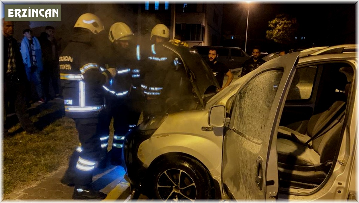 Erzincan - Olay Erzincan merkeze bağlı Geçit Mahallesinde meydana geldi. Alınan bilgiye göre park halinde ki hafif ticari araçtan dumanların yükseldiğini gören vatandaşlar durumu 112 Acil Çağrı Merkezine bildirdi. İhbar üzerine bölgeye itfaiye ve polis ekipleri sevk edildi. Olay yerine gelen itfaiye ekiplerinin müdahalesi ile söndürülen yangında araçta maddi hasar meydana gelirken yangının elektrik aksamından kaynaklandığı tahmin edildi. Daha sonra sahibine ulaşılarak araç teslim edildi.