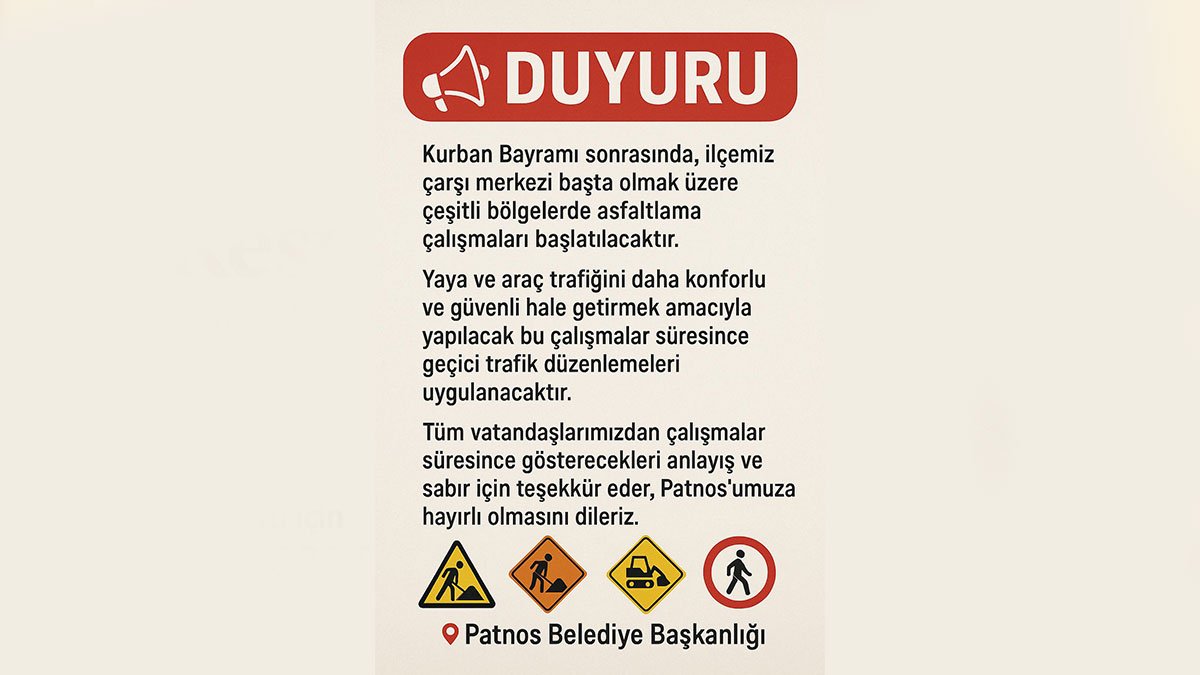 Patnos Belediyesi, Kurban Bayramı sonrasında ilçede kapsamlı bir asfaltlama çalışması başlatacağını duyurdu. Açıklamaya göre, çarşı merkezi başta olmak üzere farklı noktalarda yapılacak çalışmalar, yaya ve araç trafiğini daha konforlu ve güvenli hale getirmeyi amaçlıyor.