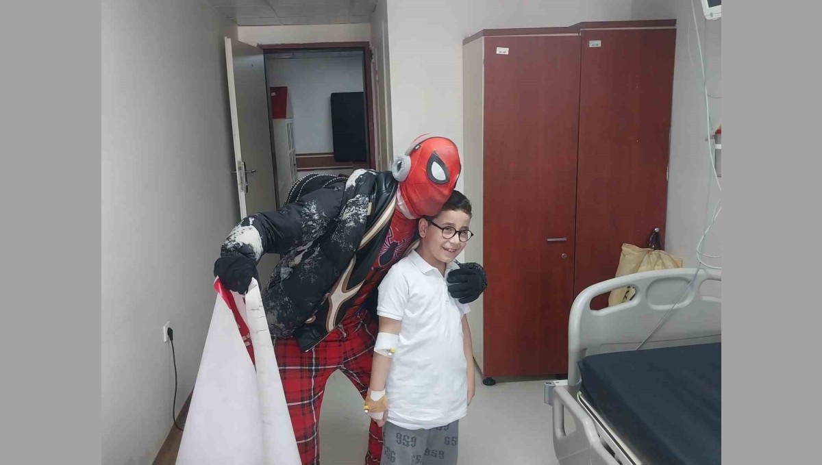 Türkiye'yi gezerek çocuklara moral veren İzmirli "Pijamalı Spiderman" Ayaz Salih Koç, 63. durağı olan Erzurum'da Atatürk Üniversitesi Araştırma Hastanesi'nde yatan minik hastaları ziyaret etti. Çocukların umut ve sevincine ortak olan Koç, hayalini gerçekleştirmeye devam ediyor.