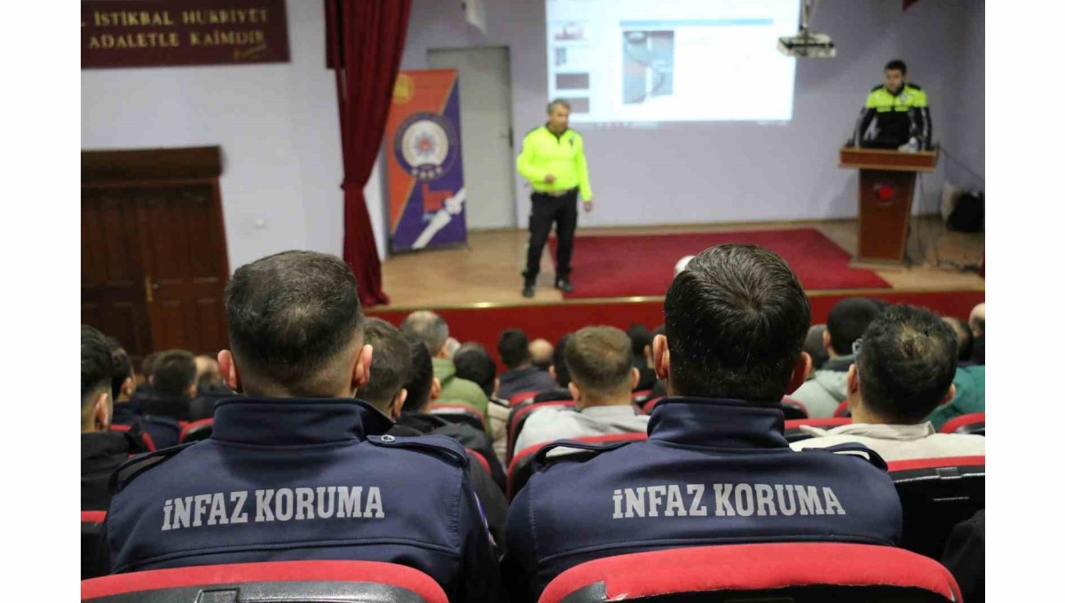 ERZURUM (İHA) - Çalışmalar kapsamında; Erzurum Trafik Tescil ve Denetleme Şube Müdürlüğü personelleri tarafından Hüseyin Turgut Eğitim Merkezi Müdürlüğünde Ceza İnfaz Koruma Amir ve Memuru toplam 150 kişiye trafik güvenliğinin iyileştirilmesi ve güvenli motosiklet kullanımı konularında seminer verildi.