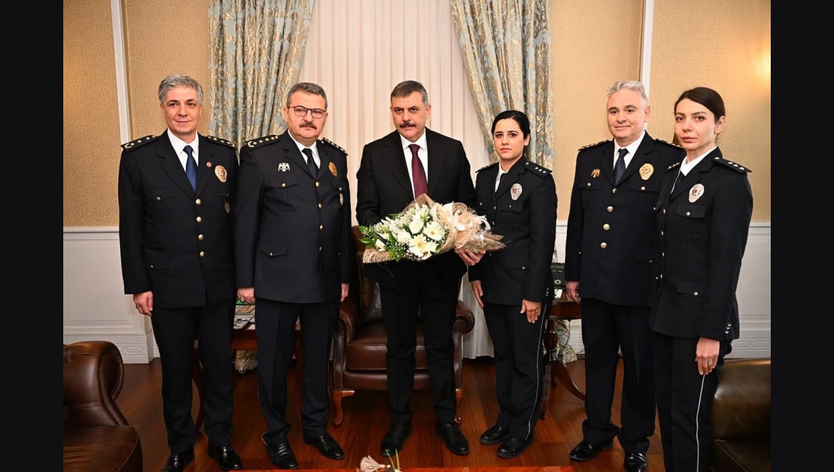 ERZURUM (İHA) - Erzurum Valisi Mustafa Çiftçi, asayiş ve güvenliğimizin teminatı olan Türk Polis Teşkilatı'nın 180. kuruluş yıl dönümü ve 10 Nisan Polis Haftası dolayısıyla, İl Emniyet Müdürü Kadir Yırtar, Polis Meslek Eğitim Merkezi Müdür Vekili Savaş Kan, İl Emniyet Müdür Yardımcısı Gökhan Dedebağı ve teşkilat mensuplarını makamında kabul etti.