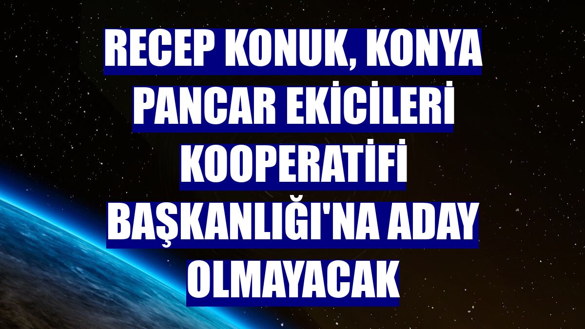 Konya Pancar Ekicileri Kooperatifi'nin 69'uncu seçimli Olağan Genel Kurulu, 29 Eylül'de Konya Büyükşehir Stadyumu'nda yapılacak. Mevcut Başkan Recep Konuk, genel kurulda aday olmayacağını açıkladı.