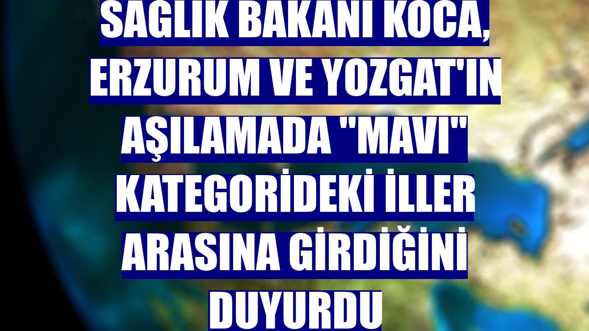 Koca, Twitter adresinden, Erzurum ve Yozgat'ın bugün yüzde 75'in üzerine çıkan ilk doz aşı oranıyla "mavi" iller arasındaki yerini aldığını belirterek, "Şimdi sıra ikinci doz aşı oranını artırmakta. Öte yandan, halen Turuncu ve Sarı olan illerimiz var. Her yanı Mavi bir Türkiye Risk Haritası için gerekeni yapalım." ifadelerini kullandı.