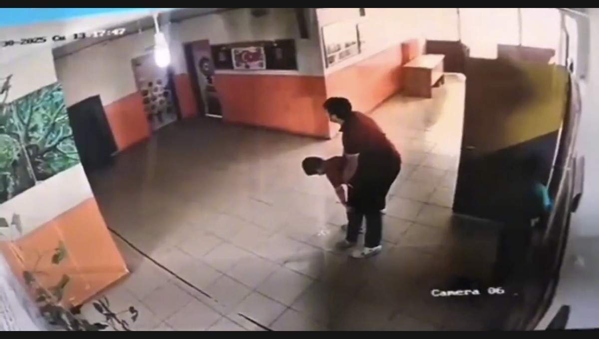 Bitlis'in Güroymak ilçesinde nefes borusuna yabancı cisim kaçan öğrenci, öğretmeninin heimlich manevrası ile kurtarıldı. O anlar, güvenlik kamerasına yansıdı.