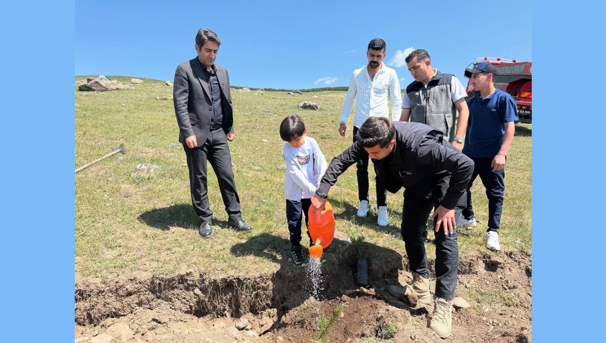 Sarıkamış'ta fidanlar toprakla buluştu, dikelen fidanlara can suyu verildi.